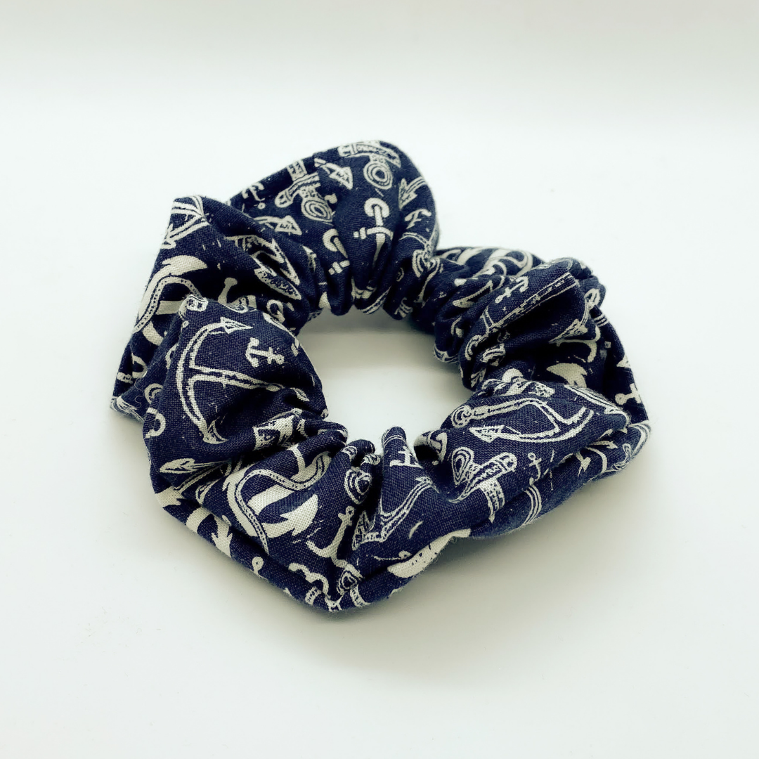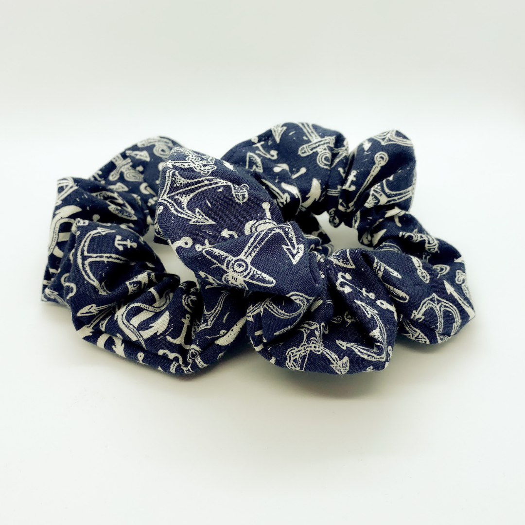 This scrunchie gives me some serious "East Coast" vibes. Are you looking for a little more stability in your scrunchie? Trying to feel a little more grounded? Look no further! This absolutely perfect anchor print on deep navy is your beach-ready go-to scrunchie!