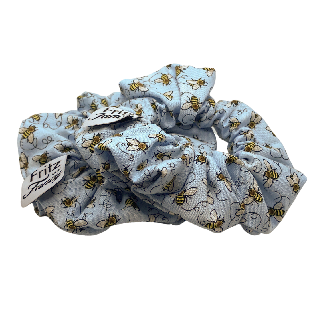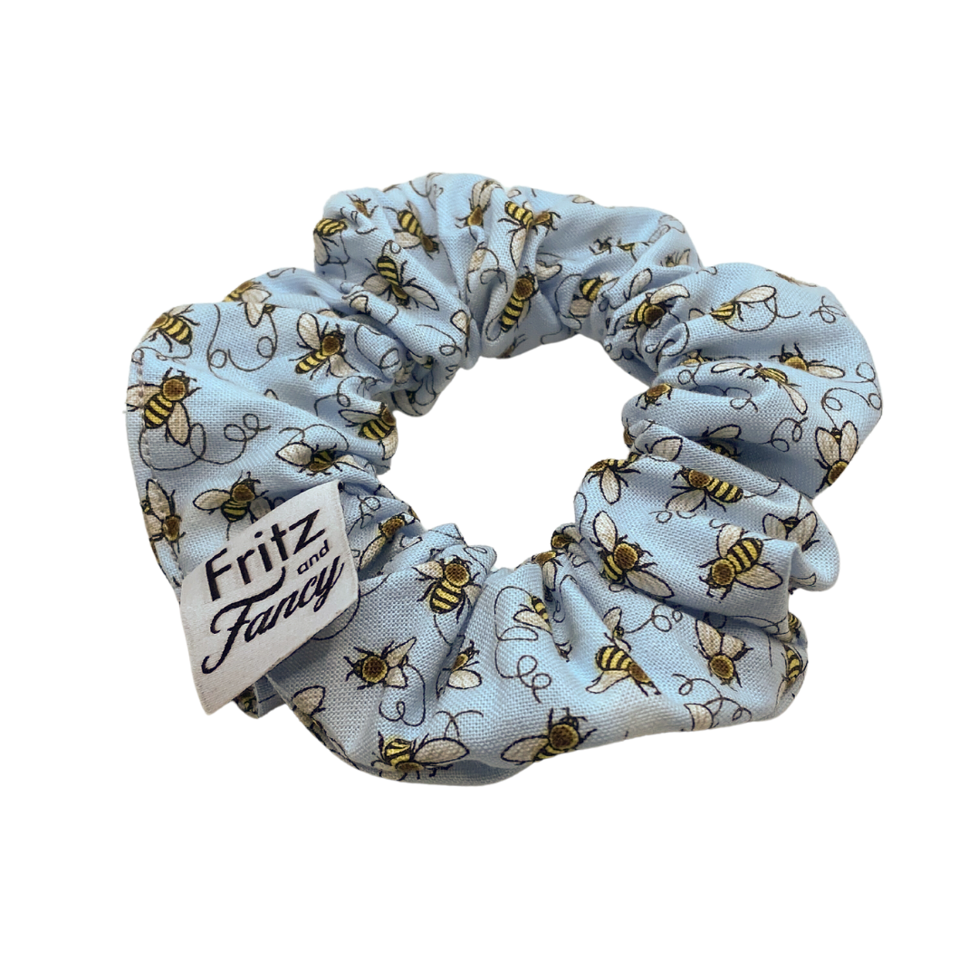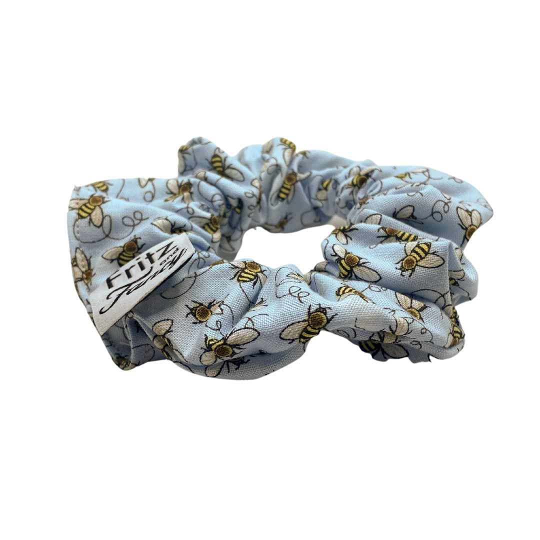 Our Honey Bees on Pale Blue Scrunchie is perfect for the bee-lover in you - cute, vibrant, and buzzing with style. Crafted with a 100% cotton design, it adds a touch of whimsy to your hairstyle. Check out the "Bee All You Can Bee" design on pale blue and you'll be buzzing with joy!