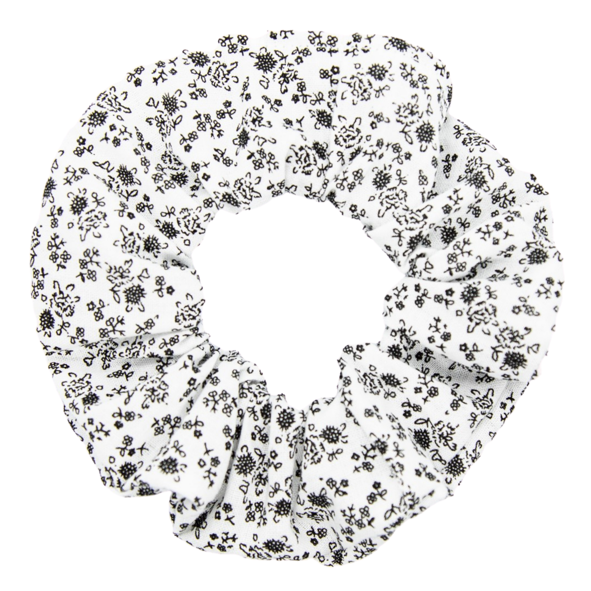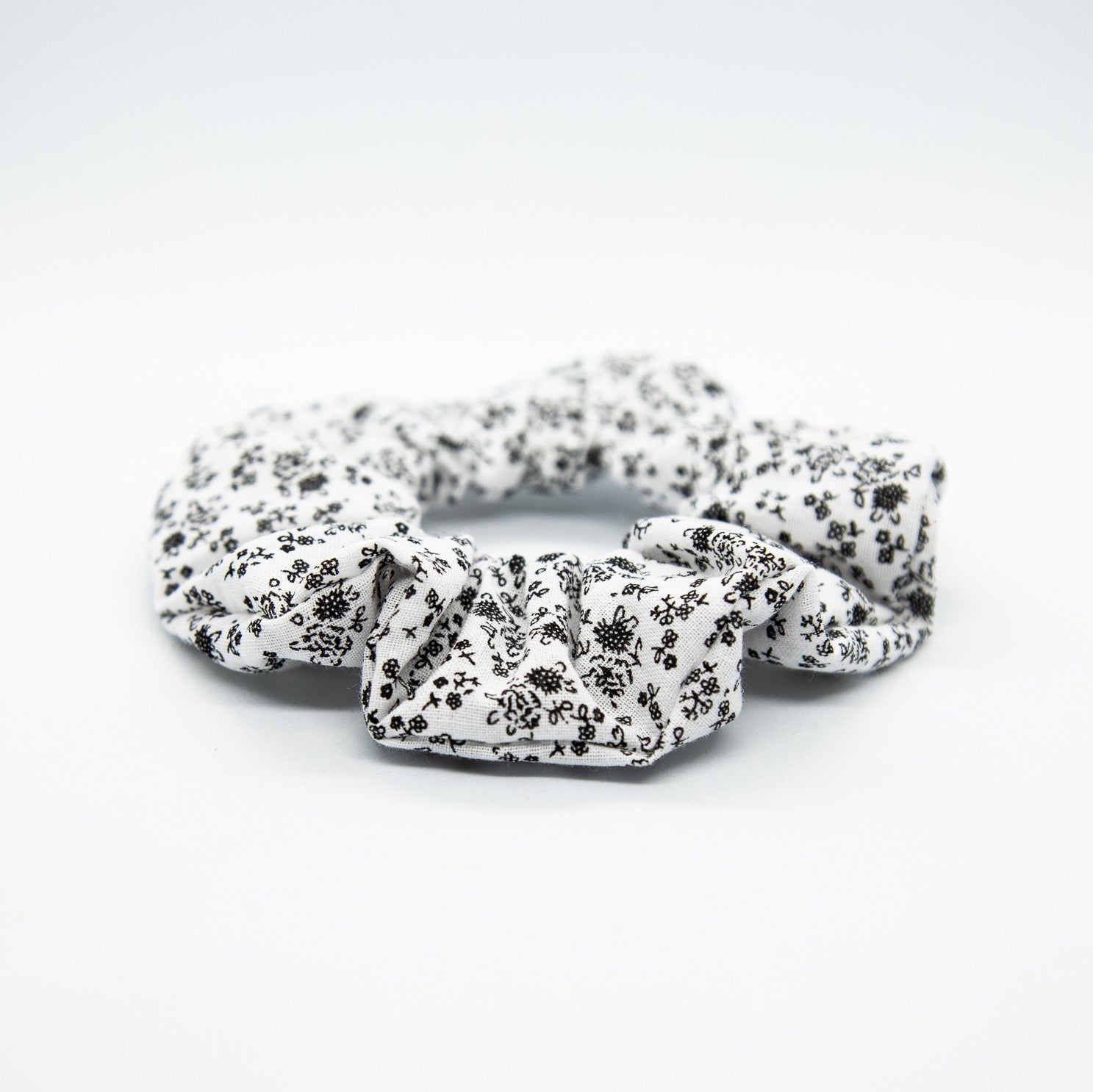 Cute. Cute. Cute. Black posies cover every centimetre of this sweet little scrunchie. I'm getting serious little-house-on-the-prairie-meets-2020 vibes. A perfect floral print for your ponytail.