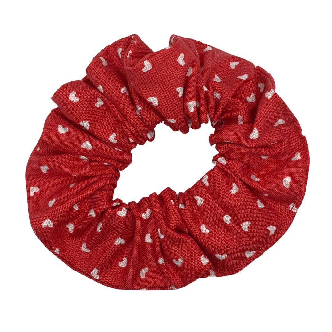 This scrunchie will leave hearts in your eyes! Emblazoned with white hearts on a red background, this cotton accessory is cute, stylish, and oh-so-adorable. Wear your love on your sleeve (or in this case, your ponytail!) with a White Hearts on Red scrunchie.